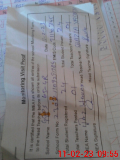 | Attendance Register | Head Teacher | MEA with School | Visit Proof |