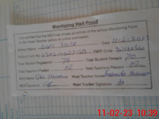 | Certified that this School was Inspected by the Undersigned MEA/DMO Today and the Information Stated Above is as Per Record. | |||||