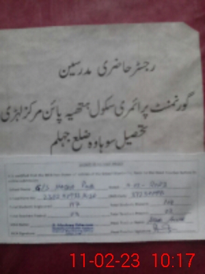| District: JHELUM | Tehsil: SOHAWA | Markaz: LEHRI - MALE | Level: Primary | |