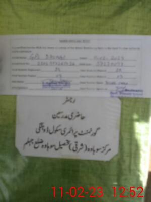 | District: JHELUM | Tehsil: SOHAWA | Markaz: LEHRI - MALE | Level: Primary | |