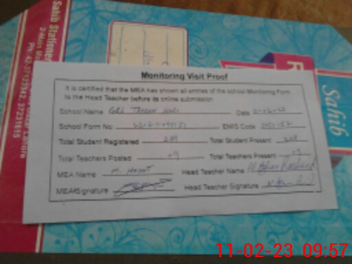 | Certified that this School was Inspected by the Undersigned MEA/DMO Today and the Information Stated Above is as Per Record. | |||||