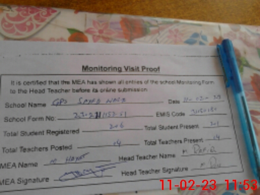 | Attendance Register | Head Teacher | MEA with School | Visit Proof |