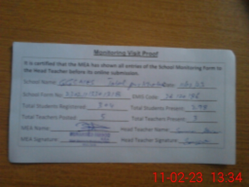 | Attendance Register | Head Teacher | MEA with School | Visit Proof |