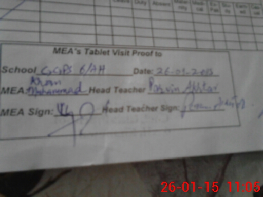 | Attendance Register | Head Teacher | MEA with School | Visit Proof |