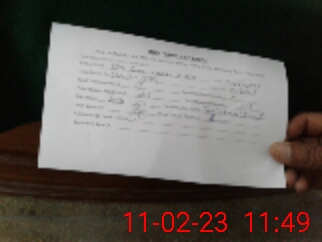 | Monitoring Date: 11-02-2023 | Start Time: 11-02-2023 11:18 AM | End Time: 11-02-2023 11:55 AM | Name of MEA: Ra**** Hu**** Gi**** | |