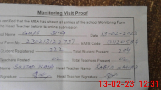 | EMIS Code: 31120584 | Name of School: GMPS CHAK NO. 31/G | |||