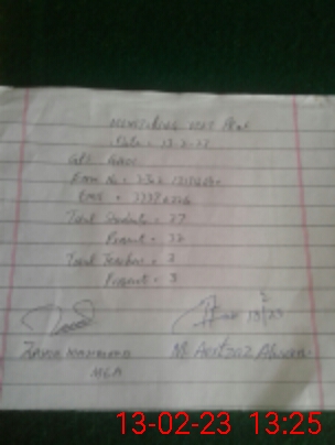 | Monitoring Date: 13-02-2023 | Start Time: 13-02-2023 01:12 PM | End Time: 13-02-2023 01:30 PM | Name of MEA: Za**** Me**** | |