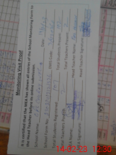 | Attendance Register | Head Teacher | MEA with School | Visit Proof |