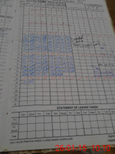 | CNIC | Full Name | Designation | R/C | Absence During Last Calender Month |