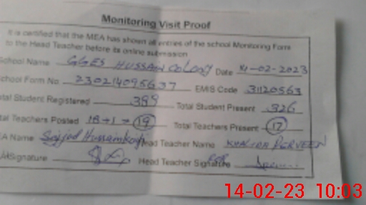 | EMIS Code: 31120563 | Name of School: GGES HUSSAIN COLONY | |||