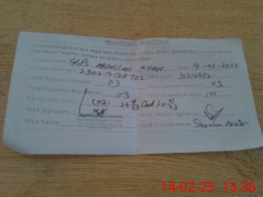 | EMIS Code: 31310492 | Name of School: GGPS ABDULLAH KHAN | |||
