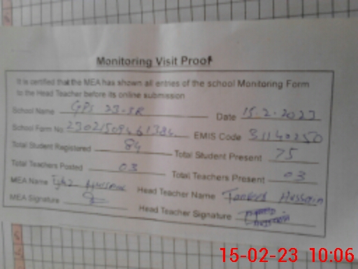 | EMIS Code: 31140250 | Name of School: GPS CHAK NO 23/3-R | |||