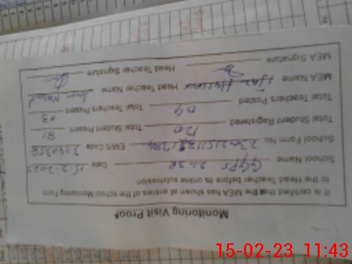 | Certified that this School was Inspected by the Undersigned MEA/DMO Today and the Information Stated Above is as Per Record. | |||||