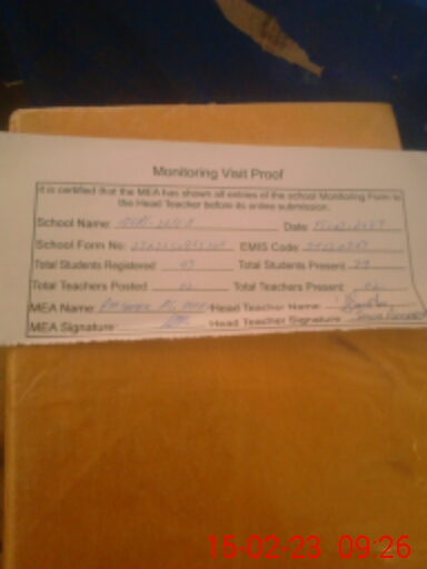 | Attendance Register | Head Teacher | MEA with School | Visit Proof |