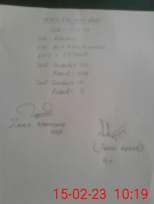 | Monitoring Date: 15-02-2023 | Start Time: 15-02-2023 09:45 AM | End Time: 15-02-2023 10:22 AM | Name of MEA: Za**** Me**** | |