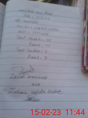 | Monitoring Date: 15-02-2023 | Start Time: 15-02-2023 11:22 AM | End Time: 15-02-2023 11:49 AM | Name of MEA: Za**** Me**** | |