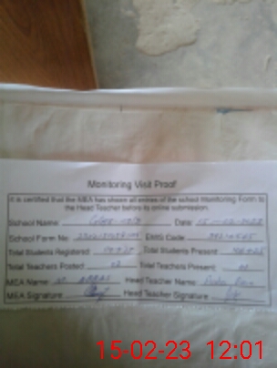 | Attendance Register | Head Teacher | MEA with School | Visit Proof |