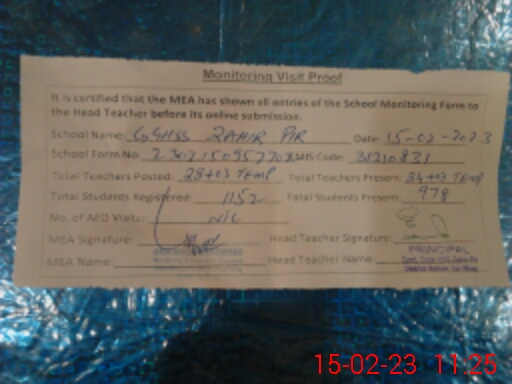 | EMIS Code: 31310831 | Name of School: GGHSS ZAHIR PIR | |||