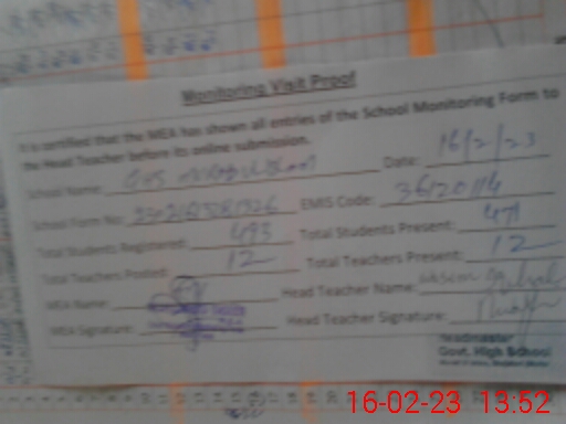 | Certified that this School was Inspected by the Undersigned MEA/DMO Today and the Information Stated Above is as Per Record. | |||||