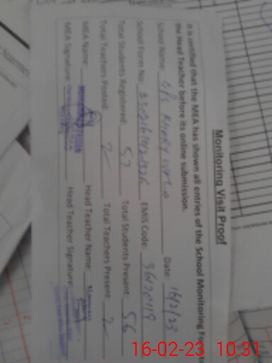 | Certified that this School was Inspected by the Undersigned MEA/DMO Today and the Information Stated Above is as Per Record. | |||||