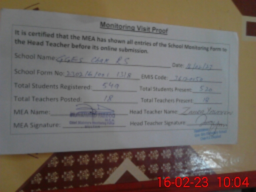 | Certified that this School was Inspected by the Undersigned MEA/DMO Today and the Information Stated Above is as Per Record. | |||||