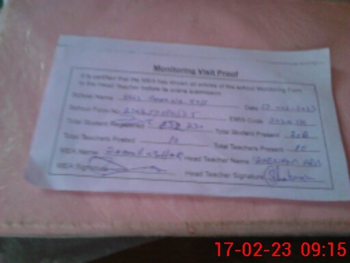 | Attendance Register | Head Teacher | MEA with School | Visit Proof |