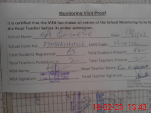 | EMIS Code: 36120122 | Name of School: GPS QAISAR PUR P/O MATOTLI SHUJABAD | |||