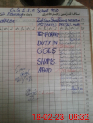 | Name: TA**** NA**** Designation: (School Headmaster's/Headmistress's) PST Phone/Cell Number: 03**** |