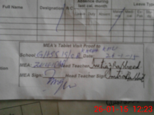 | Attendance Register | Head Teacher | MEA with School | Visit Proof |