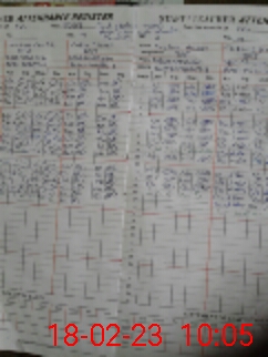 | No. of Students Present - Male | 0 | 0 | 19 | 18 | 17 | 29 | 20 | 22 | 48 | 41 | 38 | 93 | 56 | 401 | ||