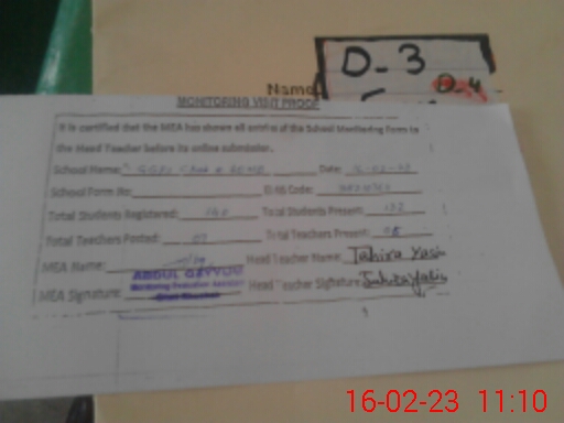 | EMIS Code: 38210763 | Name of School: GGPS CHAK NO. 40 MB | |||