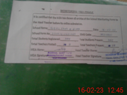 | EMIS Code: 38210881 | Name of School: GGHS CHAK NO 41 MB | |||