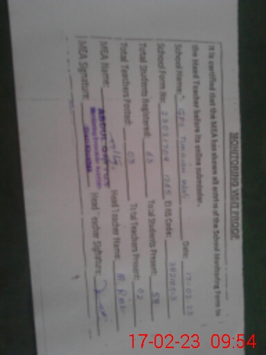 | Name: Mu**** Ri**** Designation: (School Headmaster's/Headmistress's) PST Phone/Cell Number: 03**** |