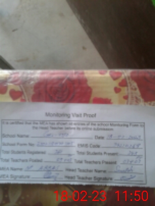 | Certified that this School was Inspected by the Undersigned MEA/DMO Today and the Information Stated Above is as Per Record. | |||||