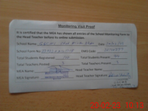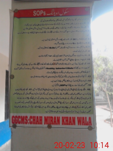 | EMIS Code: 36120277 | Name of School: GGCMS CHAH MIRAN KHAN | |||