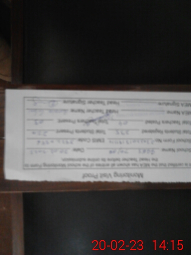 | Attendance Register | Head Teacher | MEA with School | Visit Proof |