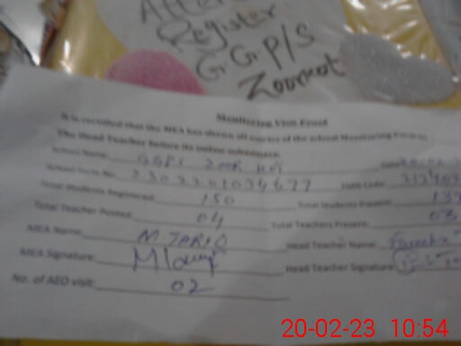 | Attendance Register | Head Teacher | MEA with School | Visit Proof |