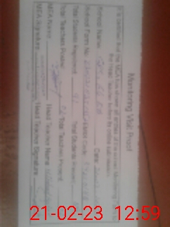 | School Visited by School Health & Nutrition Supervisor (No. of Visits) | 1 | Name1: | KASHIF BASHIR | Name2: | Nil |