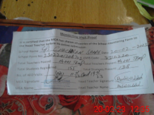 | EMIS Code: 31310220 | Name of School: GPS CHACHRAN SHARIF | |||