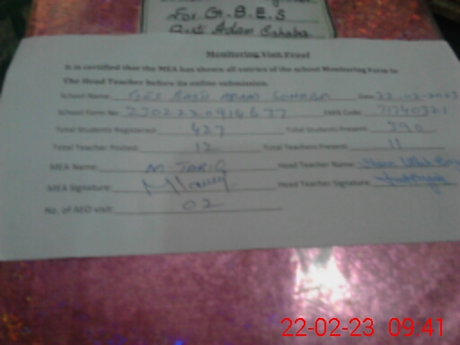 | EMIS Code: 31340321 | Name of School: GES BASTI ADAM SOHABA | |||