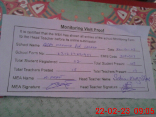 | Certified that this School was Inspected by the Undersigned MEA/DMO Today and the Information Stated Above is as Per Record. | |||||