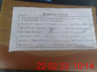 | Monitoring Date: 22-02-2023 | Start Time: 22-02-2023 09:57 AM | End Time: 22-02-2023 10:16 AM | Name of MEA: Za**** Iq**** BN**** | |