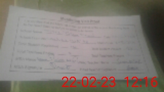 | Attendance Register | Head Teacher | MEA with School | Visit Proof |