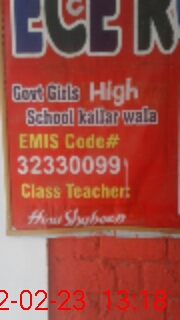 | EMIS Code: 32330099 | Name of School: GGHS KALLAR WALA | |||