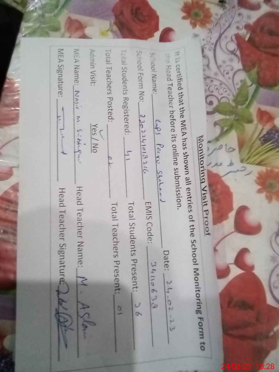 | EMIS Code: 34110638 | Name of School: GPS PEERU SHAHEED | |||