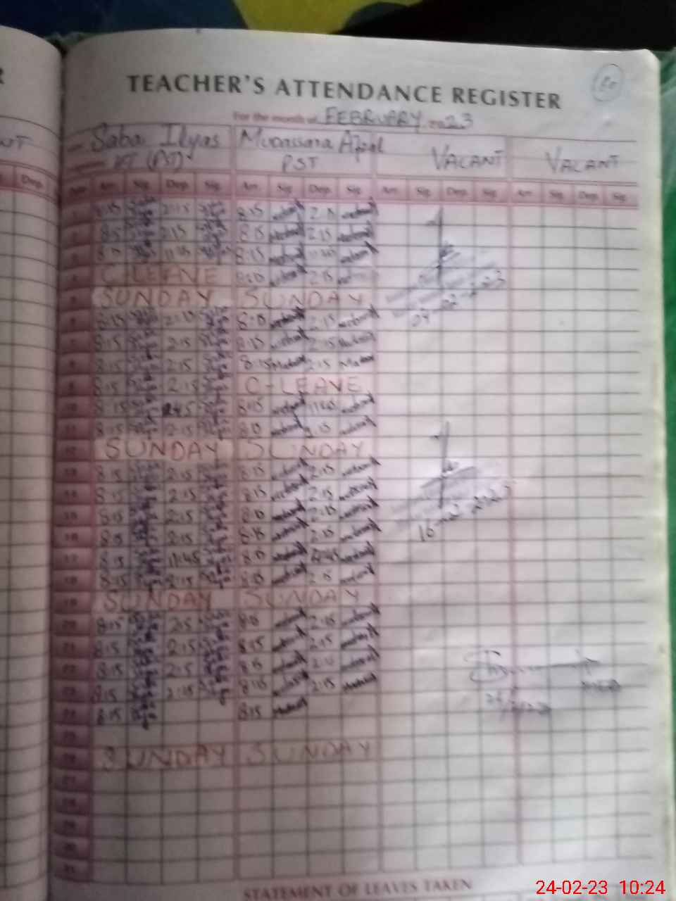 | Leave | Duty | Absent | Maternity | Medical | Ex- Pak |
