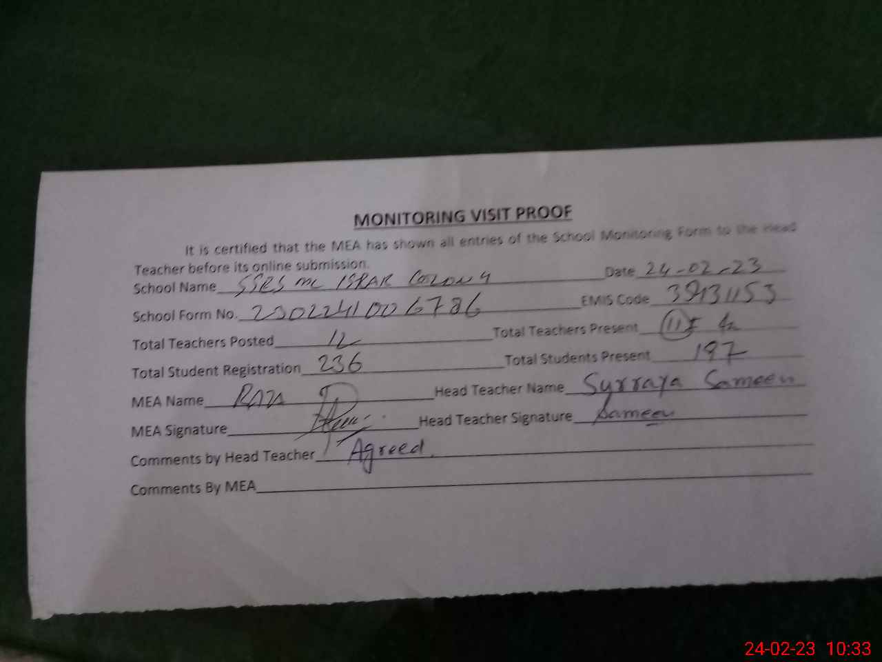 | EMIS Code: 35431153 | Name of School: GGES MC ISRAR COLONY | |||