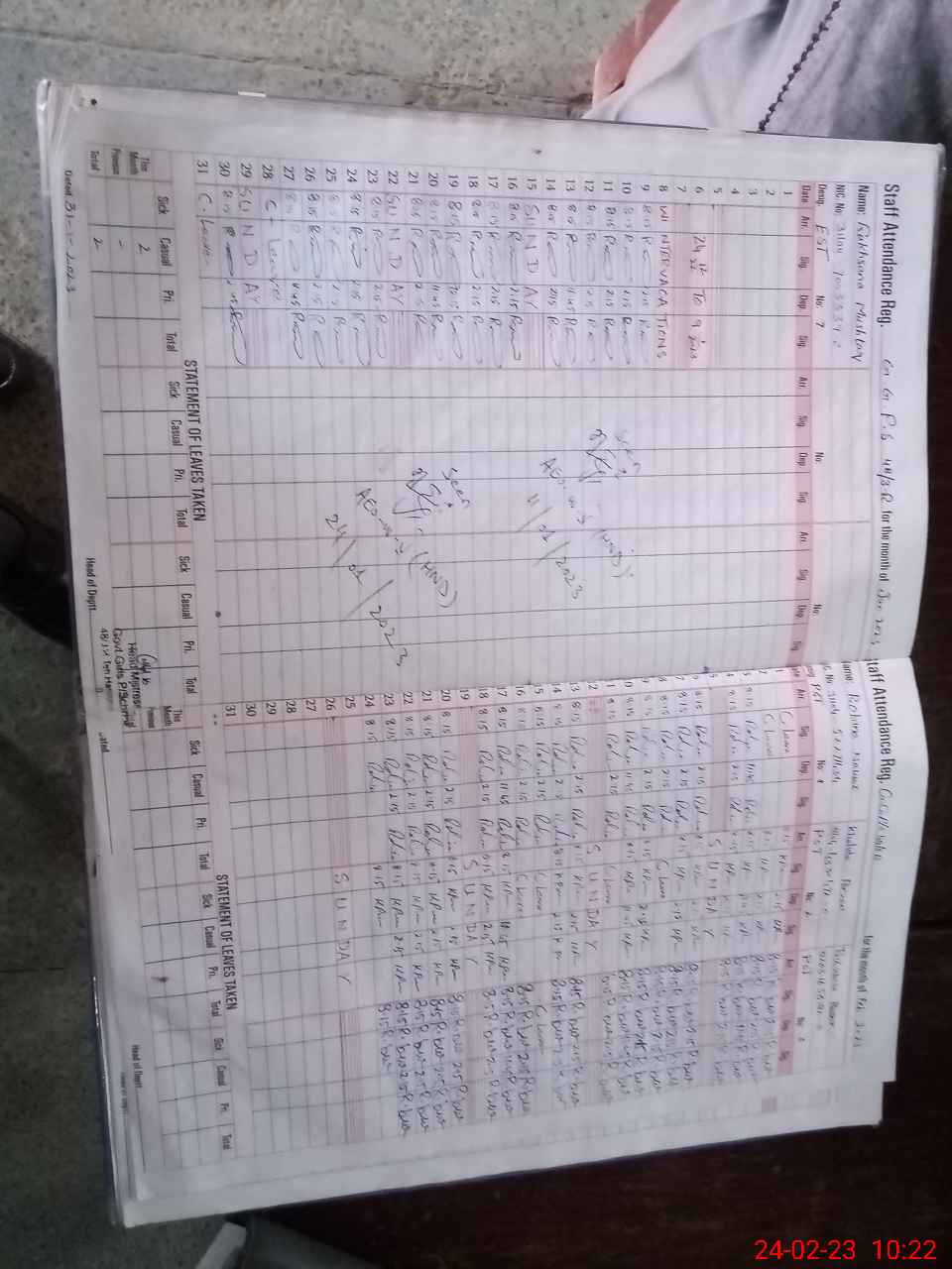 | Leave | Duty | Absent | Maternity | Medical | Ex- Pak |