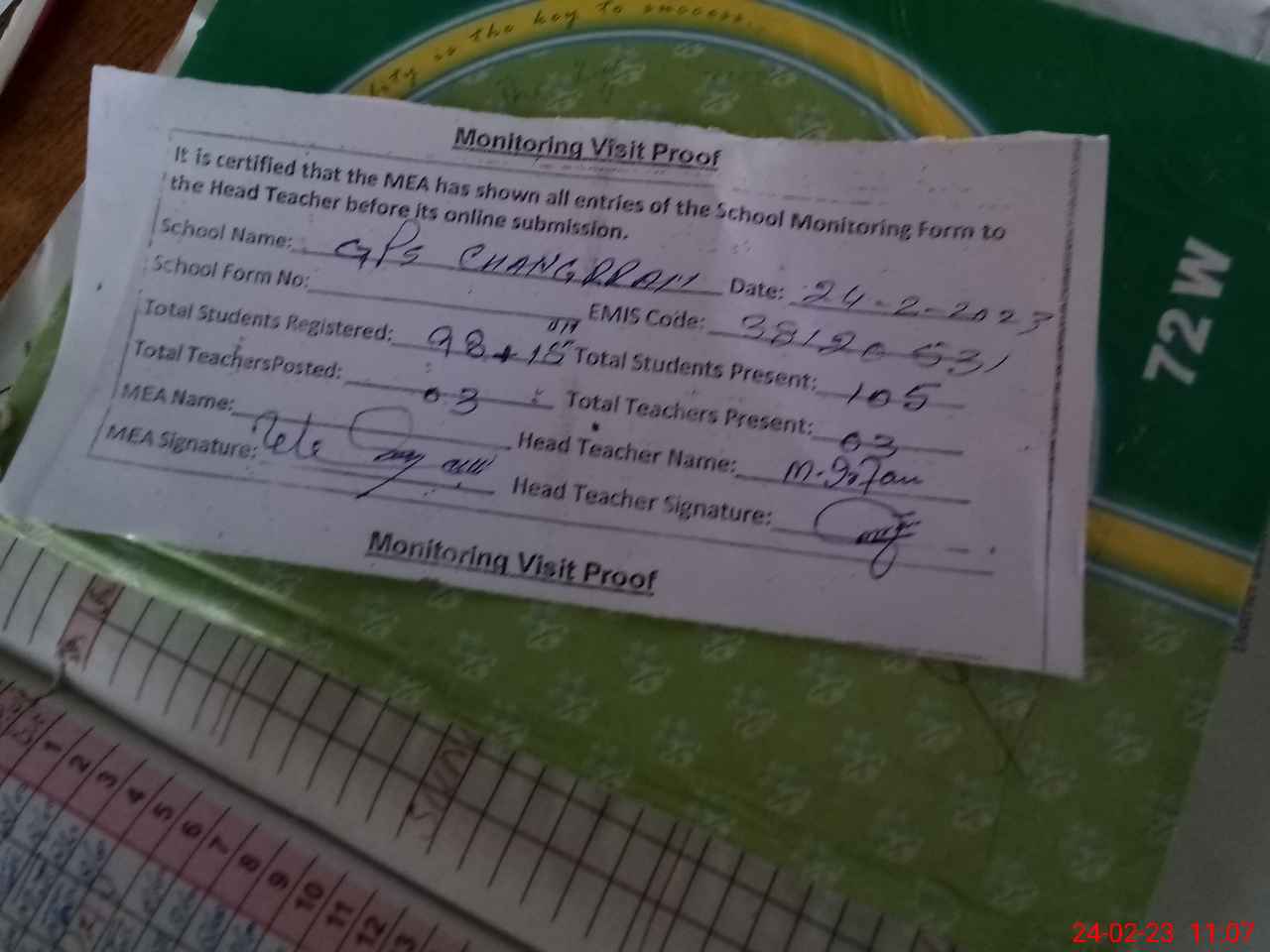 | EMIS Code: 38120531 | Name of School: GPS CHAH CHANGRAN WALA | |||