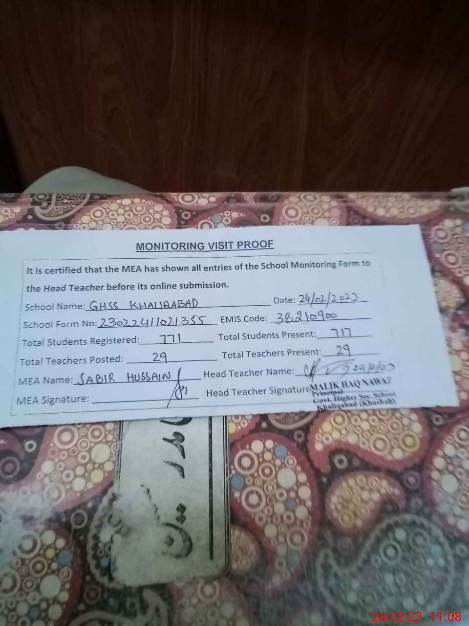 | EMIS Code: 38210900 | Name of School: GHSS KHALIQ ABAD | |||
